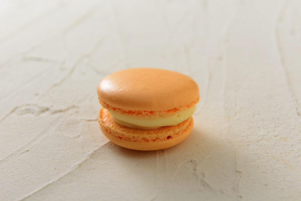 Macaron マカロン ~Macaron~ マカロンの本場 パリで学んだ技術をもとに、かわいくて美味しくなるよう研究に研究を重ねたマカロンです。たっぷりなクリームが生地と同じ食感になるようにしています。少し大きめサイズなのが特徴です! 5個入(バニラ、レモン、イチゴ、柿、ほうじ茶、抹茶) ¥1,700-(税込) 購入する